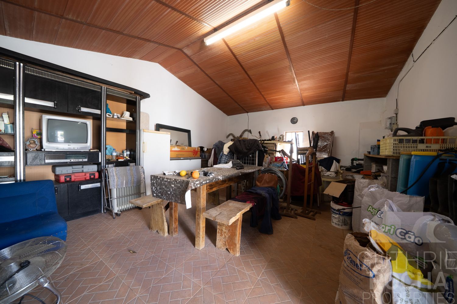 Conta ainda com 128 m² de armazéns e alpendres e um tanque com possibilidade de conversão em piscina.
