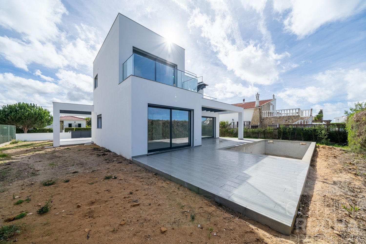 Fabulosa casa de nova construção com piscina, jardim e vistas espetaculares para o mar! A uma curta distância das praias de Arrifana, Monte Clérigo e Amoreira. A poucos passos de supermercados e restaurantes. Localizada no Parque Natural do Sudoeste do Alentejo e Costa Vicentina. Esta casa de 3 quartos está situada num bairro muito tranquilo, com excelente exposição solar e vistas espetaculares. Minimalista, luminosa e com uma distribuição bem pensada. Cozinha com ilha e sala integrada. Graças aos materiais e acabamentos de alta qualidade, a casa é confortável durante todo o ano. Mobiliário embutido para maximizar o espaço de arrumação e o conforto. Para aquecimento de água, está equipada com painéis solares e em caso de falta de sol, dispõe de uma resistência elétrica. Para climatização geral, a casa está equipada com ar condicionado. Existe pré-instalação de aquecimento por piso radiante e pré-instalação para lareira a lenha ou a pellets na sala de estar. Janelas de alumínio com vidros duplos, isolamento térmico e acústico e equipadas com estores elétricos. Zona para estacionar 2 carros e uma lavandaria e área técnica com entrada independente. A casa possui três varandas espaçosas e um terraço na cobertura onde é possível instalar uma área de estar ou uma jacuzzi. - Cozinha e sala de estar amplas e integradas com ilha - 3 suítes - 1 lavabo - Armários embutidos espaçosos em cada quarto - Janelas de alumínio com vidros duplos, isolamento térmico e acústico e persianas elétricas - Ar condicionado instalado - Aquecimento de piso pré-instalado - Pré-instalação para lareira a lenha ou a gás na sala de estar - Painel solar e reservatório de 300 litros com resistência elétrica embutida - Piscina com acabamento a ser definido pelo comprador - Vistas para o mar Imóvel ideal para quem busca uma casa de qualidade para morar ou investir. Não hesite e agende sua visita ja!