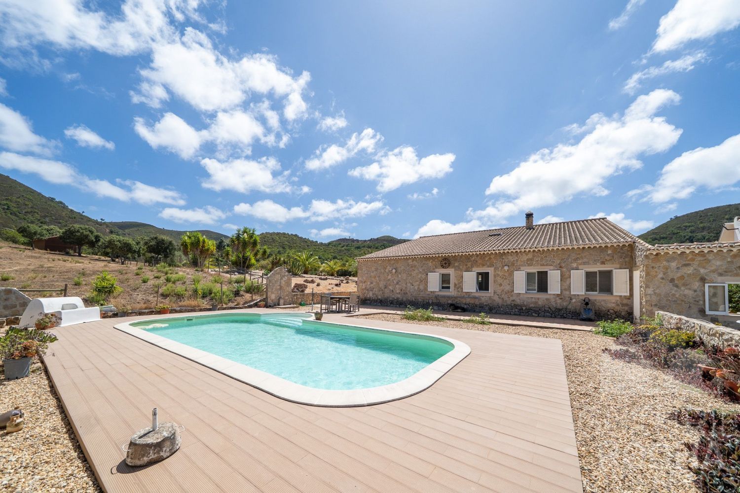 Sempre sonhou ter uma quinta de largas dimensões perto de Aljezur? Esta é a oportunidade perfeita! Esta belíssima quinta de 100 hectares oferece tranquilidade num extenso terreno praticamente livre de manutenção, e ainda assim a conveniência de Aljezur a apenas 3 km de distância. A propriedade é composta inteiramente por sobreiros e medronheiros, oferece trilhos pedestres privados em terrenos acidentados, não tem falta de água e a vegetação em redor da casa e é totalmente à prova de potenciais fogos ou incêndios. Principais detalhes da propriedade: - A casa foi construída em 2008 e tem 214 m² de área útil, com 4 quartos (todos com casa de banho privativa!) em dois pisos. - A casa foi construída com elevado standard de acabamentos, é bem isolada e equipada com piso radiante. Sem nenhum possivel bolor, humidade e com muita luz natural. - Vários terraços em redor da casa e uma piscina protegida do vento permitem a utilização no exterior a qualquer hora do dia ou do ano. - Todas as divisões são muito espaçosas. Todos os quartos, a cozinha, a sala de estar e um jardim de inverno que têm luz e espaço suficientes. - A área em redor da casa é amplamente vedada e tem duas entradas separadas. - A propriedade foi concebida para uma potencial criação de animais. Há meia dúzia de estábulos com barracões de construção sólida e áreas de armazenamento para burros, cavalos, porcos, cães, bem como para rações, máquinas agrícolas e ferramentas. - Uma ampla garagem dupla e abrigo coberto para automóveis. - Um riacho atravessa a propriedade no Inverno e primavera. - Árvores de fruto, horta e um grande lago para peixes. Não são necessárias remodelações, nem internas nem externas. Agende hoje mesmo a sua visita e faça deste imovel o seu novo projecto de vida!